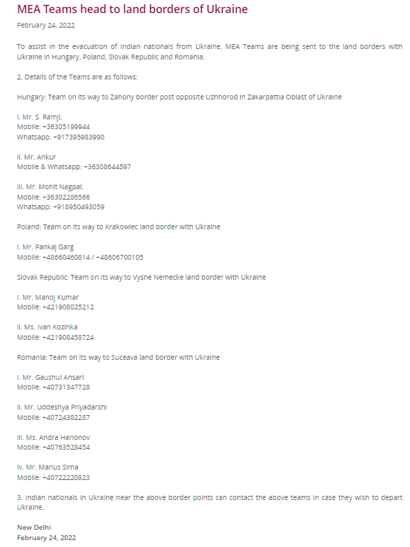 യുക്രെയ്നില് കുടുങ്ങിയ ഇന്ത്യക്കാരെ നാട്ടിലെത്തിക്കാനുള്ള രക്ഷാദൗത്യം ഉര്ജിതമാക്കി ,ഇന്ത്യ റുമാനിയയിലേയ്ക്ക് രണ്ടു വിമാനങ്ങൾ,ഉക്രൈനിലെ ഇന്ത്യക്കാർ ബന്ധപ്പെടേണ്ട നമ്പറുകൾ .. ,
