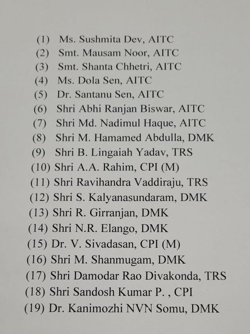 വിലക്കയറ്റം, ജിഎസ്ടി വിഷയങ്ങളിൽ പ്രതിക്ഷേധിച്ച 11 എംപിമാരെ ഒരാഴ്ചത്തേക്ക് സസ്പെൻഡ് ചെയ്തു