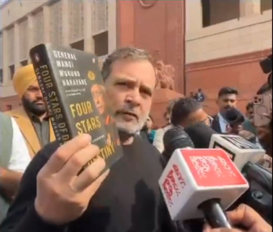പ്രസിദ്ധീകരിച്ചിട്ടില്ലെന്ന് കേന്ദ്ര സർക്കാർ പറയുന്ന എം എം നരവനേയുടെ പുസ്തകം പാര്ലമെന്റിൽ ഉയർത്തി രാഹുൽ ഗാന്ധി