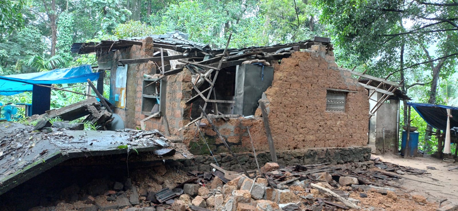 ഇടുക്കികാഞ്ഞിരവേലിയിൽ കാറ്റിലും മഴയിലും വീട് തകർന്നു , mazha മുന്നറിയിപ്പിനെ തുടർന്ന് ആളുകൾ മാറിത്താമസിച്ചതിനാൽ വാൻ അപകടം ഒഴിവായി