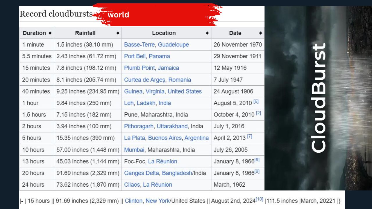 Cloudbursts are among the most violent and unpredictable natural events. Characterized by sudden, extreme rainfall over a small area, these events can unleash catastrophic floods, landslides, and widespread devastation. While their occurrence is often limited to specific geographical regions, primarily mountainous and hilly areas, the impact of cloudbursts on human life and property is profound. This article delves into the history, frequency, and human toll of cloudbursts around the world.