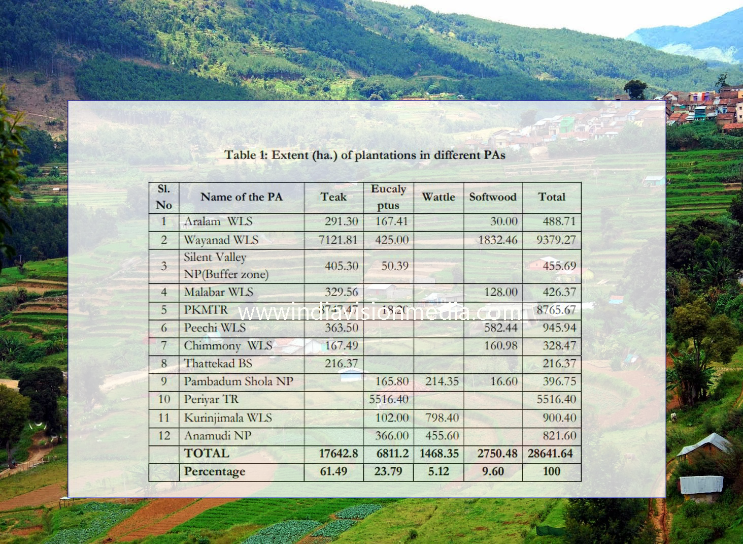 ഇടുക്കി ജില്ലയിലെ വട്ടവട കാന്തല്ലൂർ പ്രദേശത്ത് 2003 പ്രഖ്യപിക്കപെട്ട ദേശിയ ഉദ്യാനങ്ങളായ പാമ്പാടുംചോല ,ആനമുടി ചോല ,കുറിഞ്ഞിമല സ്വാൻച്വറി . തുടങ്ങായ സംരക്ഷിത മേഖല പ്രദേശങ്ങളിൽ 60 വര്ഷം മുൻപ് സാമുഹ്യ വനവത്കരണത്തിന്റെ ഭാഗമായി നട്ട് വളർത്തിയ മരങ്ങൾ ഇപ്പോൾ വനമേഖലയാകെ വളർത്തു പന്തലിച്ചിരിക്കുകയാണ് .അധിനിവേശ സസ്യങ്ങൾ വരുന്നതോടെ വനമേഖയിൽ മറ്റു വൃക്ഷങ്ങൾ ഒന്നും വളരാതാകുകയും. പ്രദേശം വലിയ പരിസ്ഥിശോഷണം നേരിടുകയുമാണ് . ഇതു ചൂണ്ടിക്കാട്ടിയാണ് ഇടുക്കി ജില്ലയിലെ സ്വതന്ത്ര കർഷക സംഘടയായ അതിജീവന പോരാട്ട വേദി വനം വകുപ്പിന്റെ തല തിരിഞ്ഞ നടപടികൾക്കെതിരെ കേരളാ ഹൈക്കോടതിയെ സമീപിച്ചിട്ടുള്ളത് .